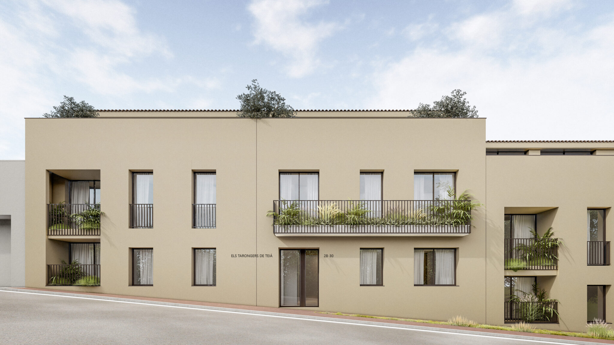 Edificio plurifamiliar de nueva planta en Torrent de les Monges (Teià), con dos accesos y dos núcleos de comunicación vertical. El programa se completa con aparcamiento soterrado y espacios comunes, incluyendo una zona comunitaria con piscina vinculada al interior de la parcela.