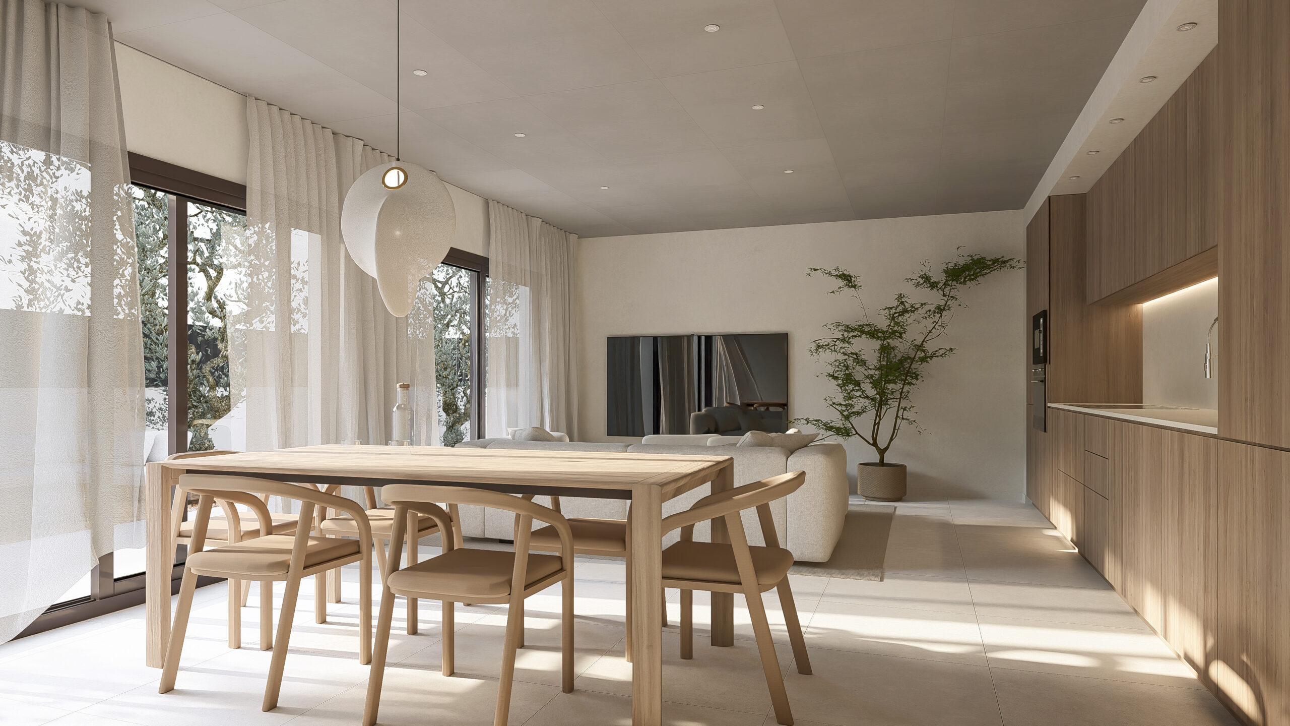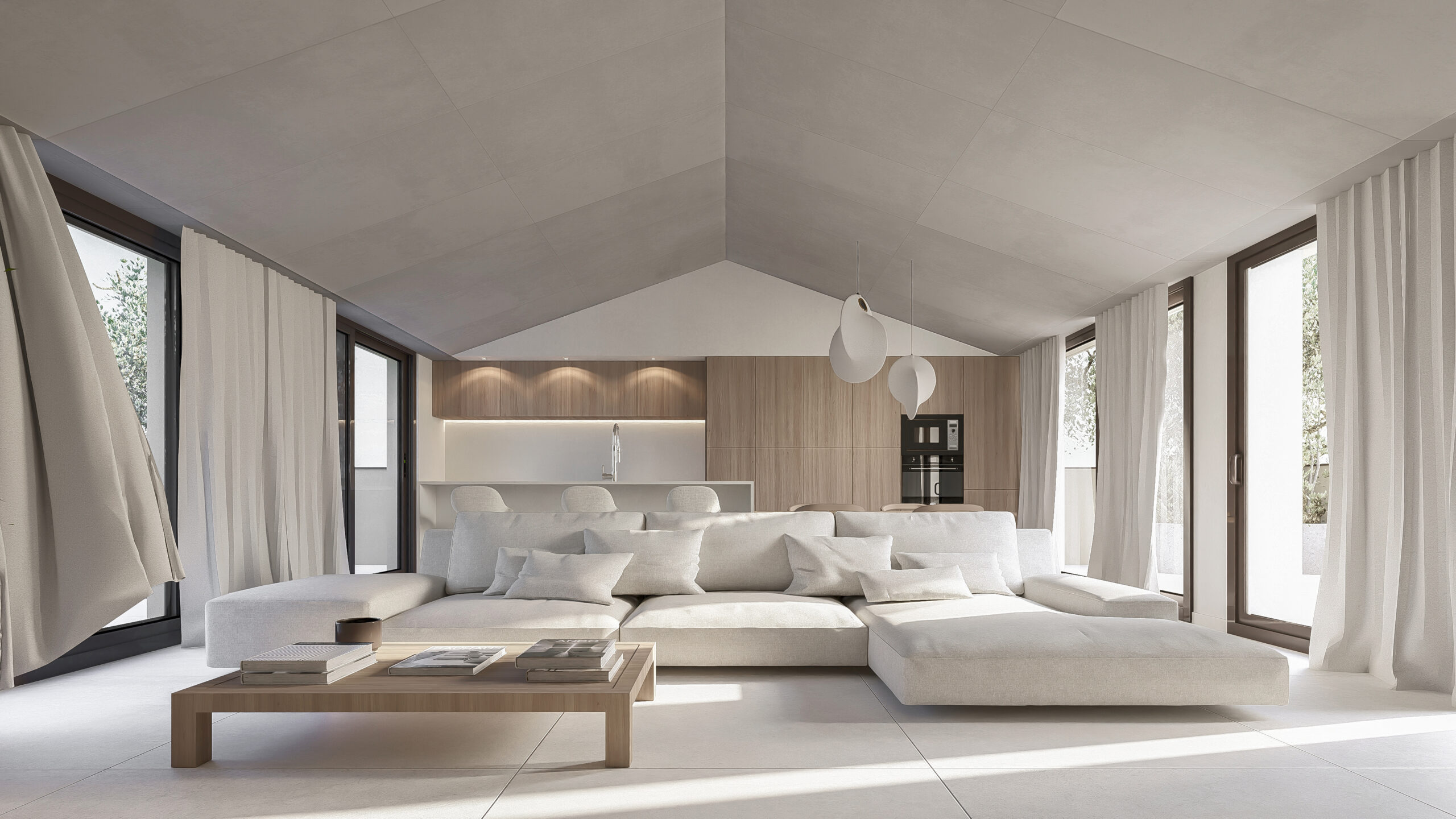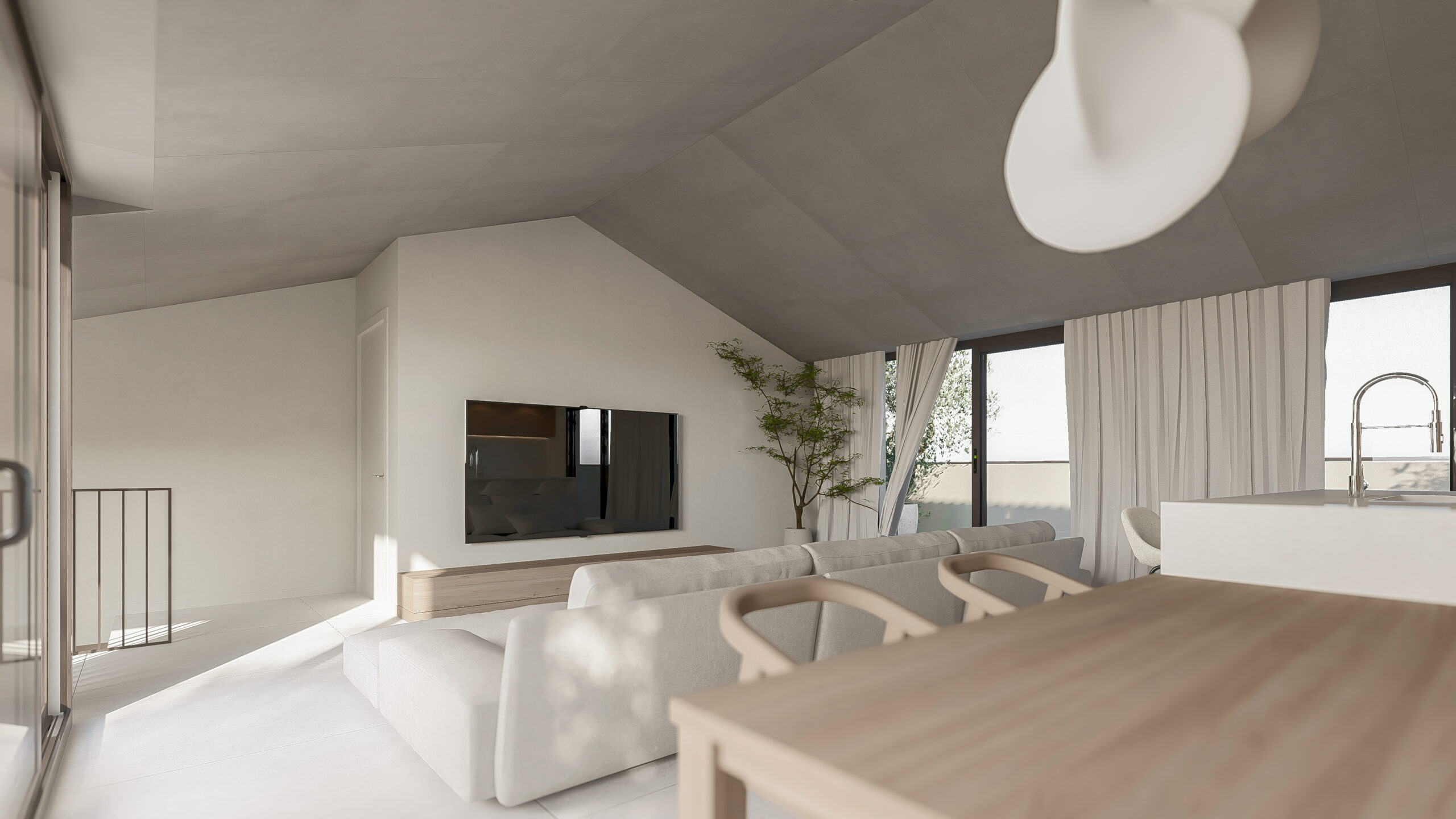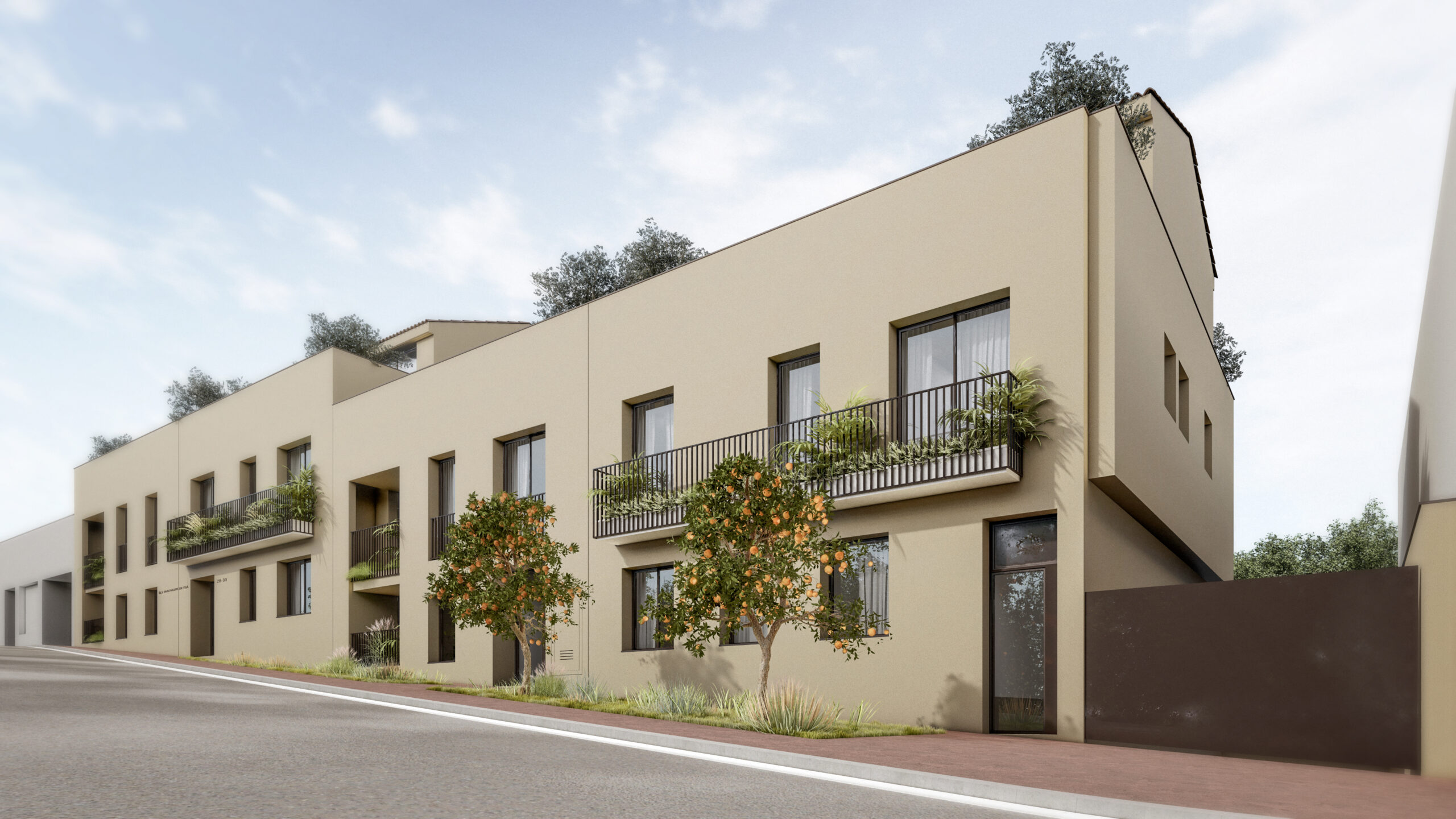 Edificio plurifamiliar de nueva planta en Torrent de les Monges (Teià), con dos accesos y dos núcleos de comunicación vertical. El programa se completa con aparcamiento soterrado y espacios comunes, incluyendo una zona comunitaria con piscina vinculada al interior de la parcela.